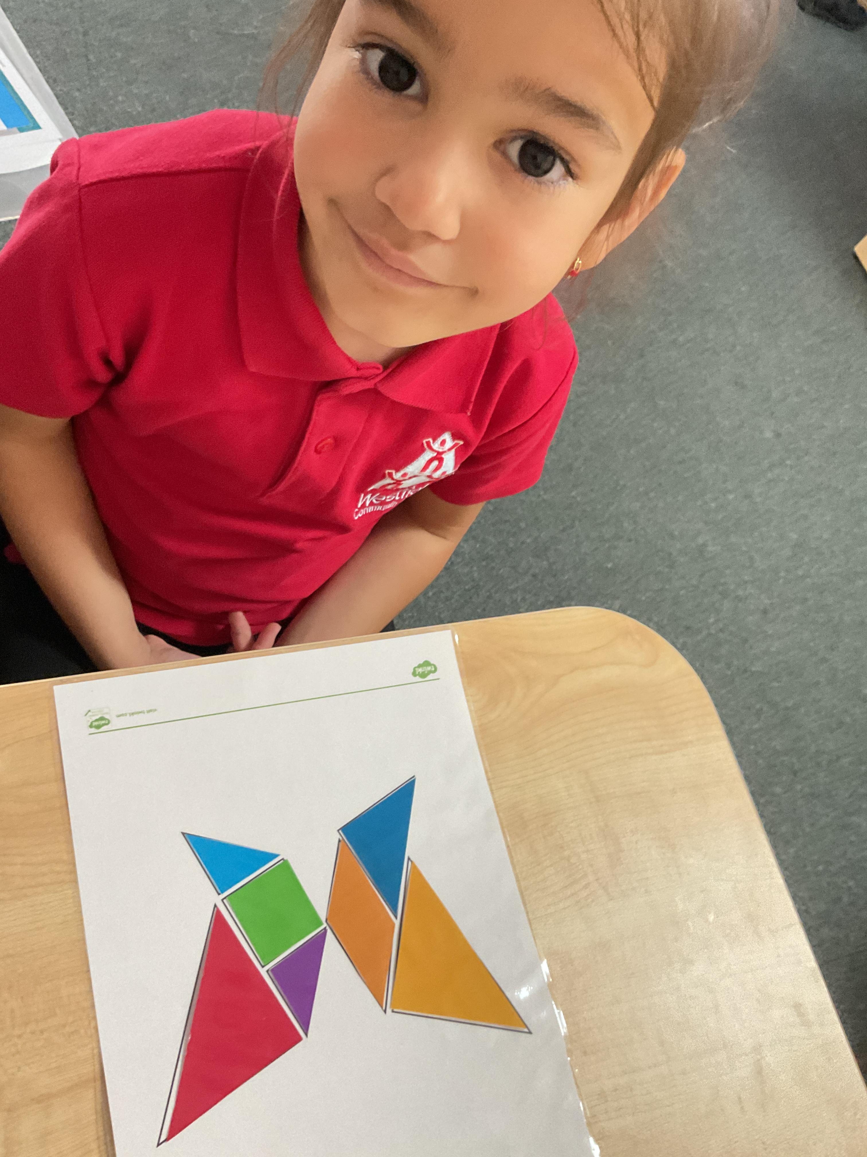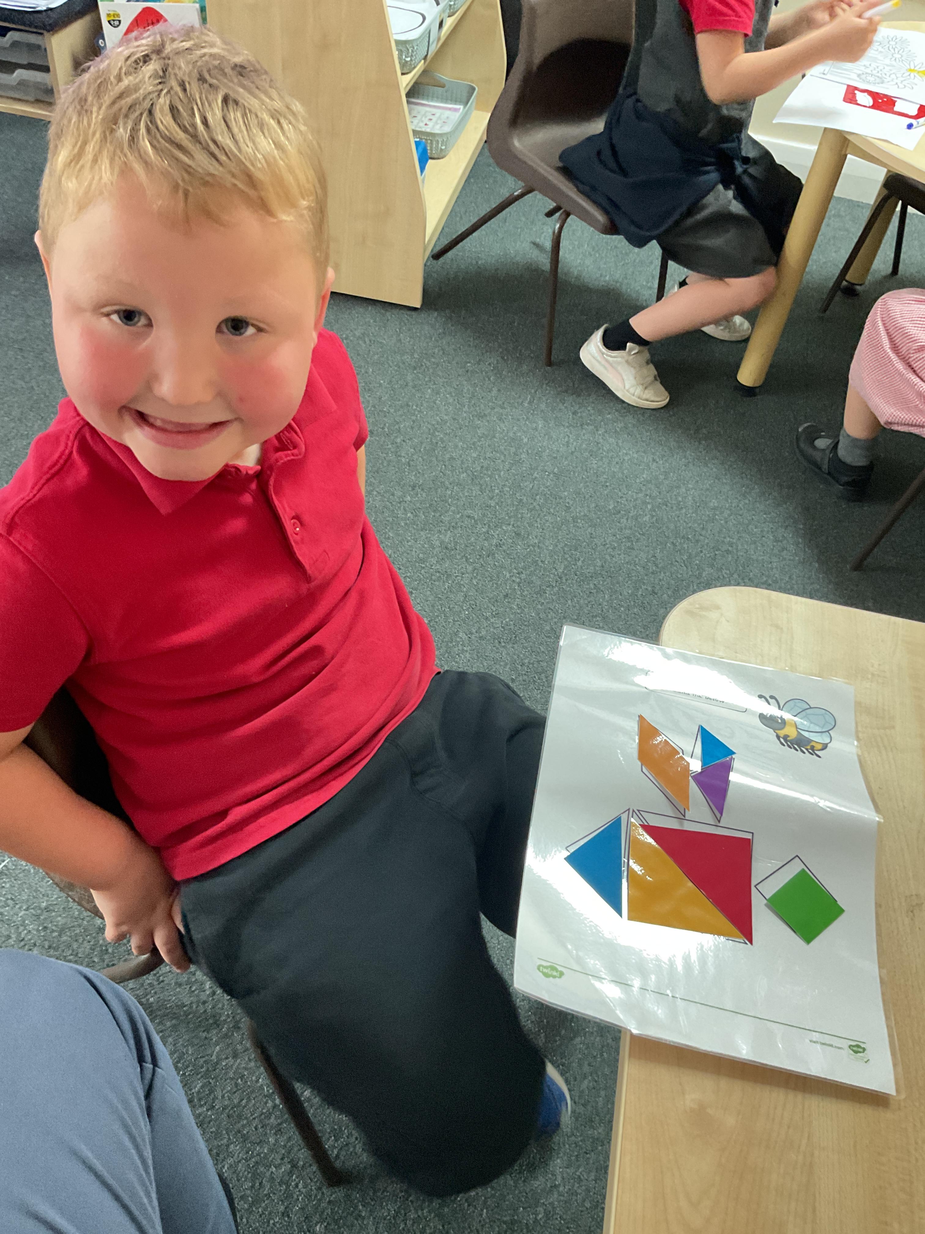 In maths this week we have been learning about doubling numbers. We have also found out about odd and even numbers, we have used the Numberblocks to help us find out and sort the numbers. We have also found out about tangrams and have selected shapes and matched them on a tangram picture.