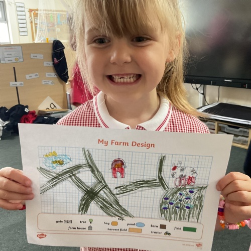 We have been very creative this week, we have finished half animal pictures of ladybirds and farm animals. We have painted our own farm animal pictures. We looked at the work of an artist and recreated our own versions of the pictures. We created maps of a farm.