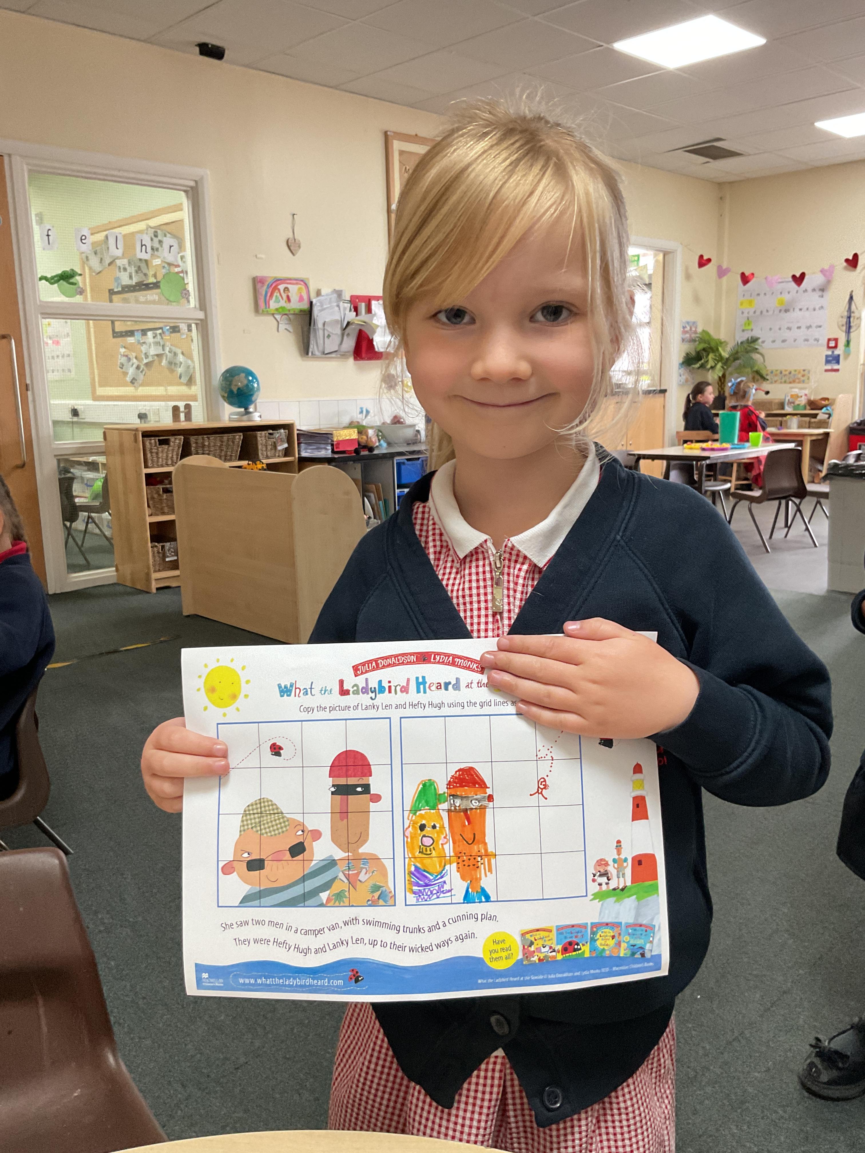 Welcome to our blog this week. We have really enjoyed working with the text 'What the ladybird heard next' by Julia Donaldson. As the story is based at a farm we have done a lot of work around farm animals. In Literacy we have made sentences, we have created wanted posters for the 2 bad men in the story, Lanky Len and Hefty Hugh. We have written animal descriptions and we made mini books based on the story.
