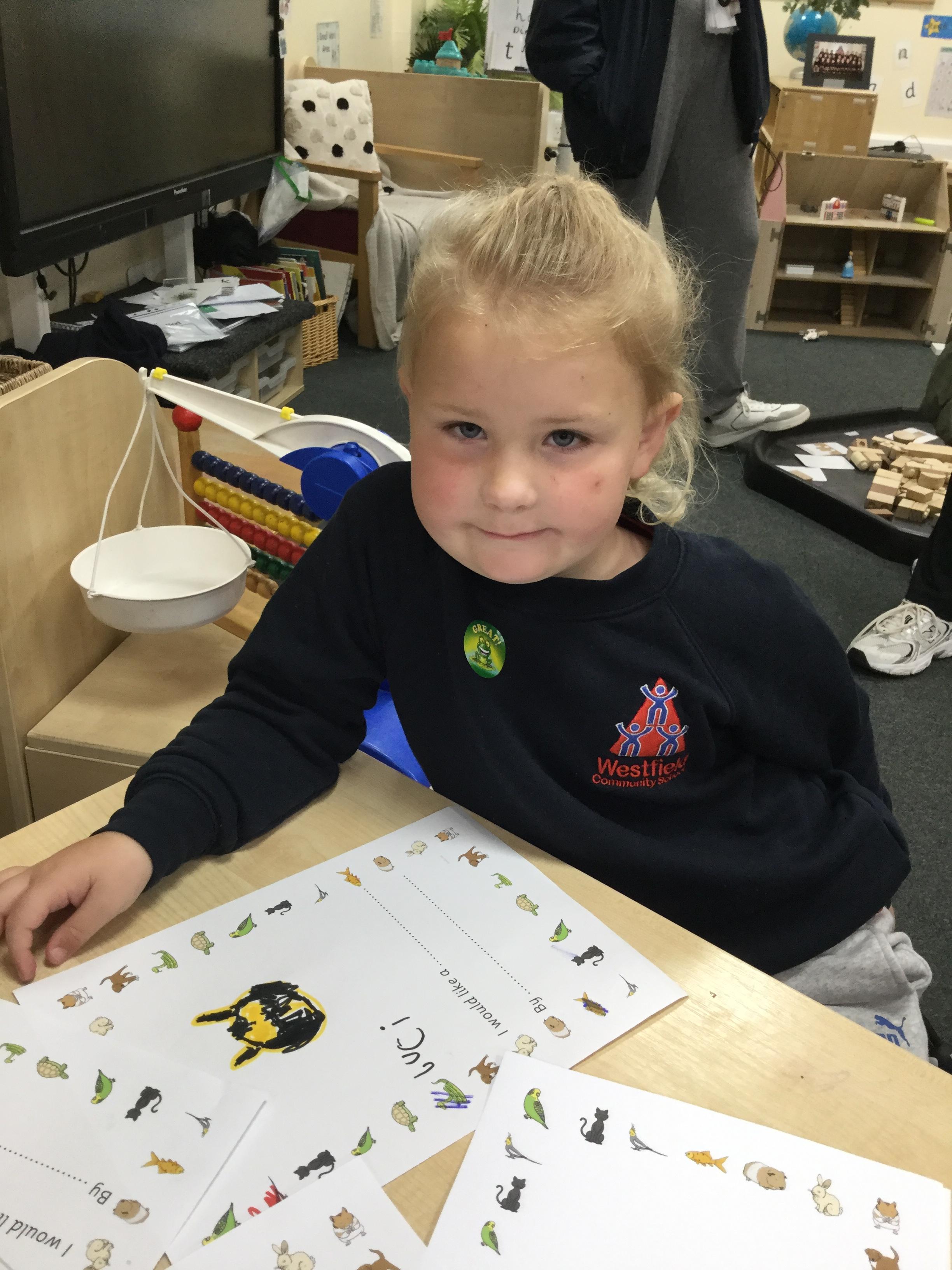 Welcome to this week's blog. We've had a great first week back after the half term break. We have based our work on the book 'Jacob O'Reilly wants a pet' by Lynne Rickards. In literacy we have drawn pictures of pets we have or would like to have and had a go at writing what they are. We have used the ipad to find out about different animals and how they live. We have used the book to help us sequence the pictures of the different animals in the story. We have looked at pages from the book and spotted letters we have been learning in Read Write Inc.