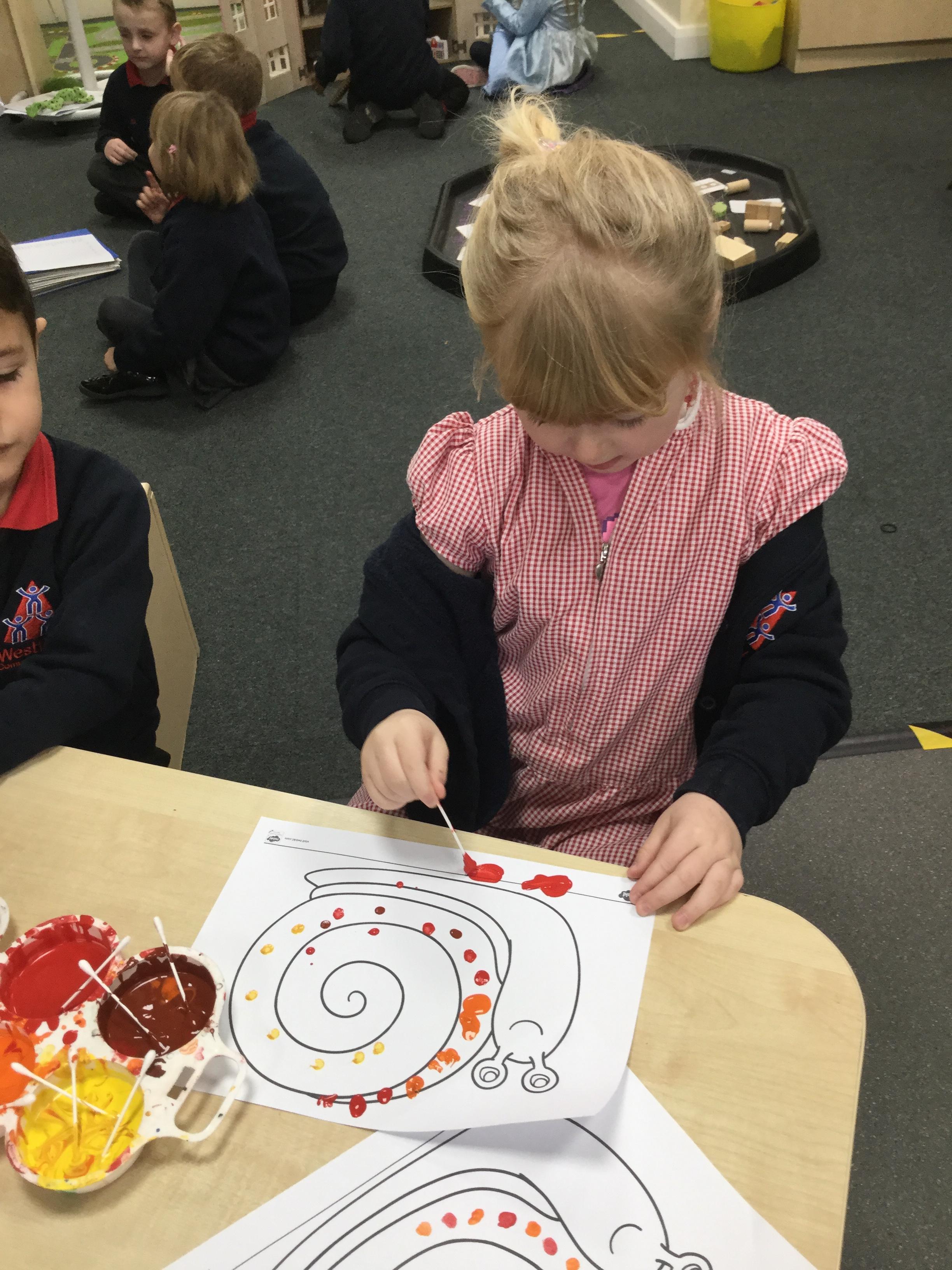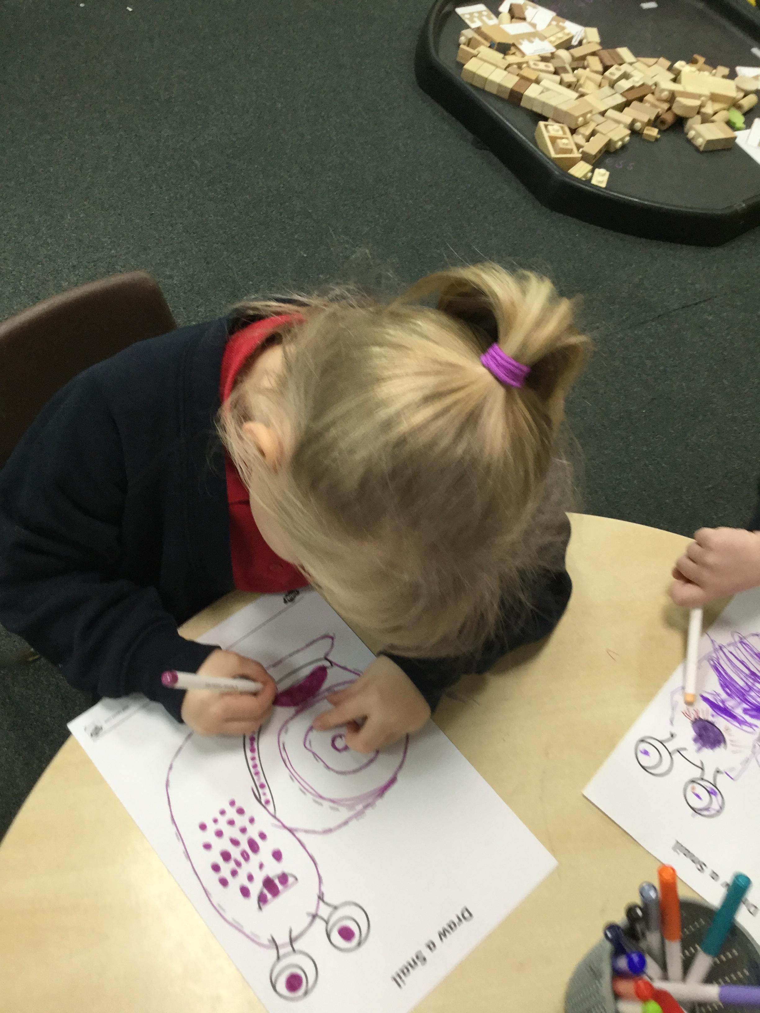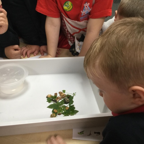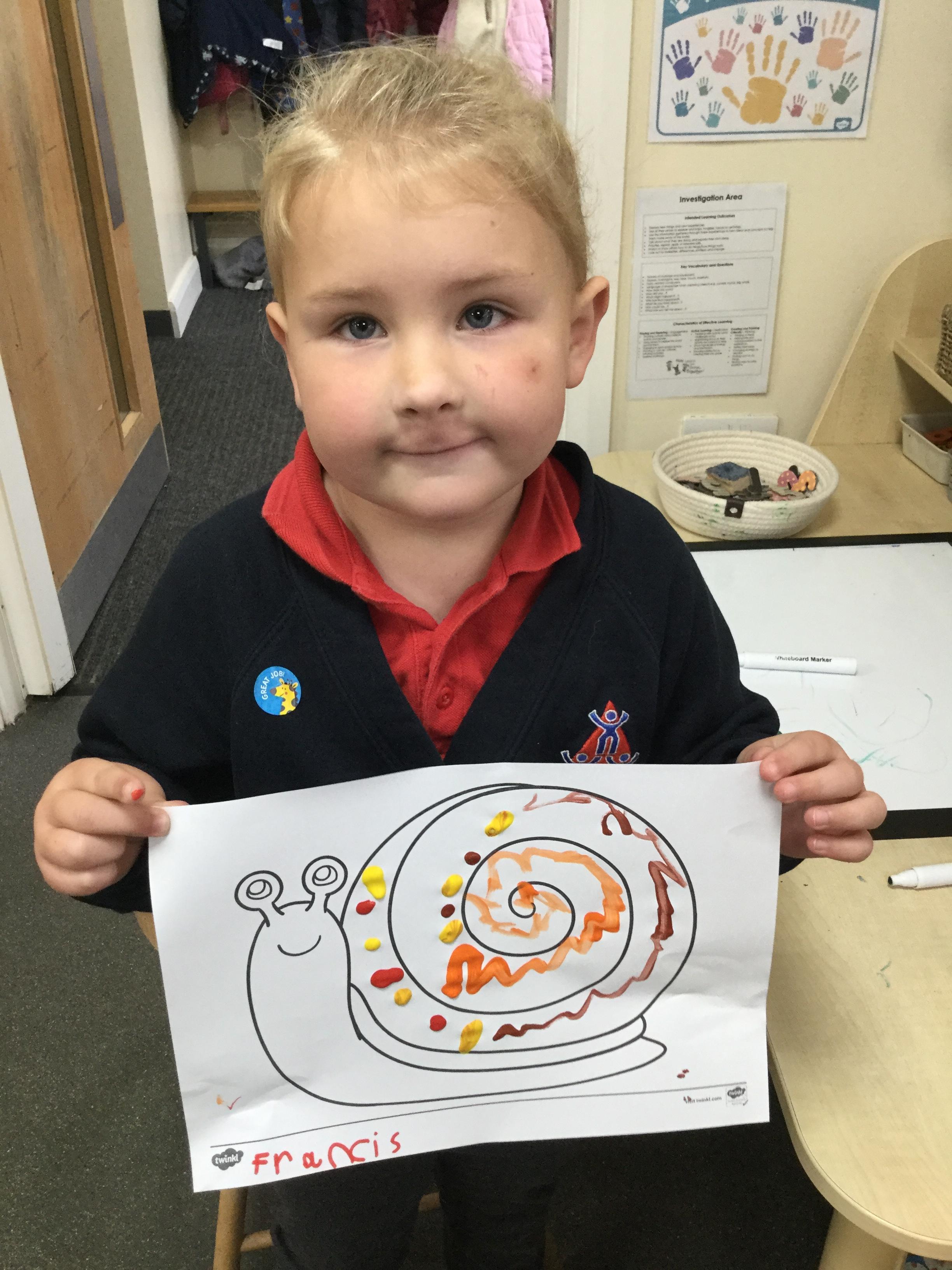 In our story, Jacob O'Reilly decided a snail was the best pet for him. Mrs Williamson found some snails in her garden and brought them in for us to look at. We drew snails and spiral pictures just like on the snails shell. We called the snails, 'Michelle' and 'Sidney'.