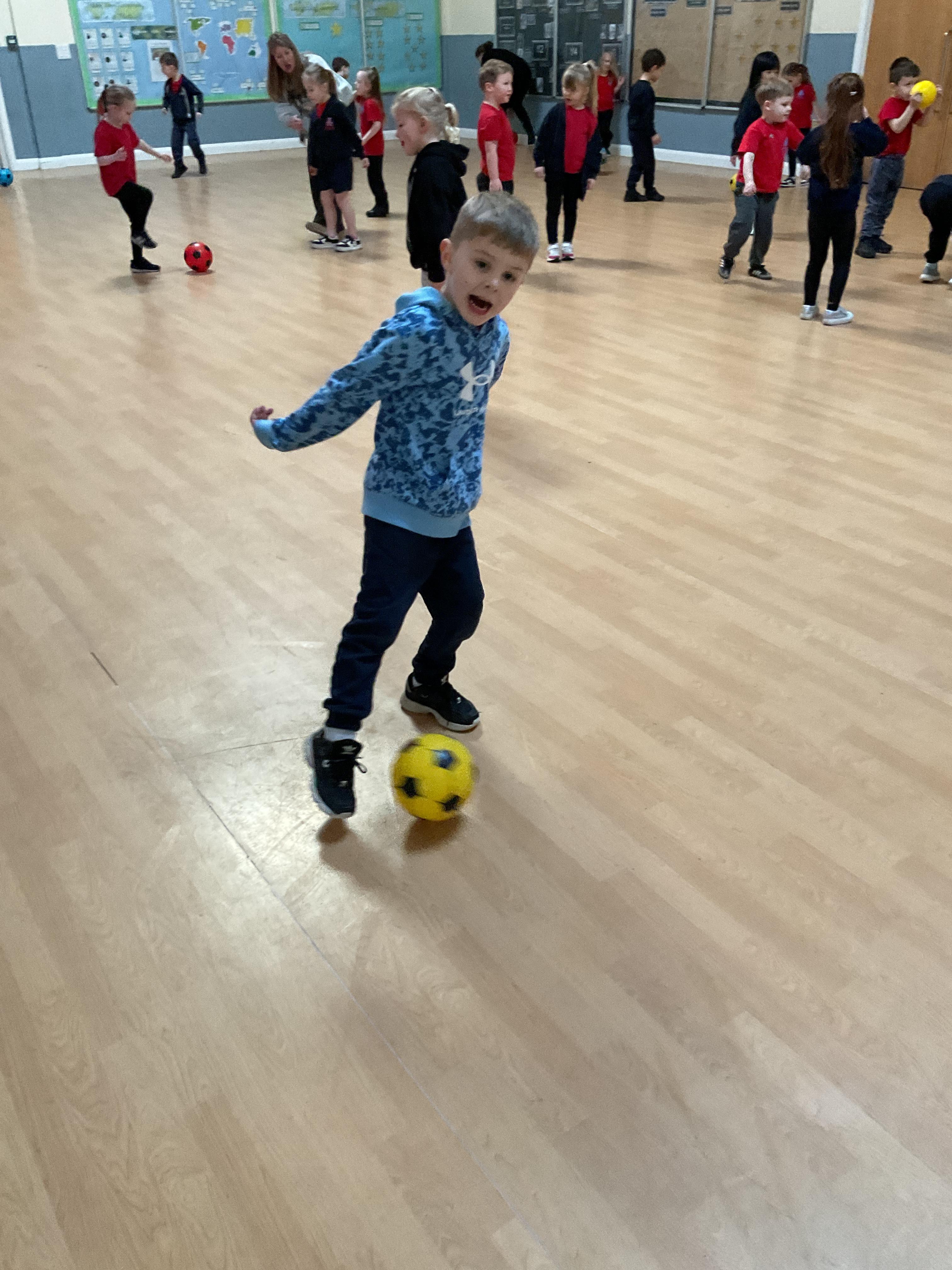 In PE we have been practising our ball skills. This week we learnt how to kick a ball effectively. The children did a great job!